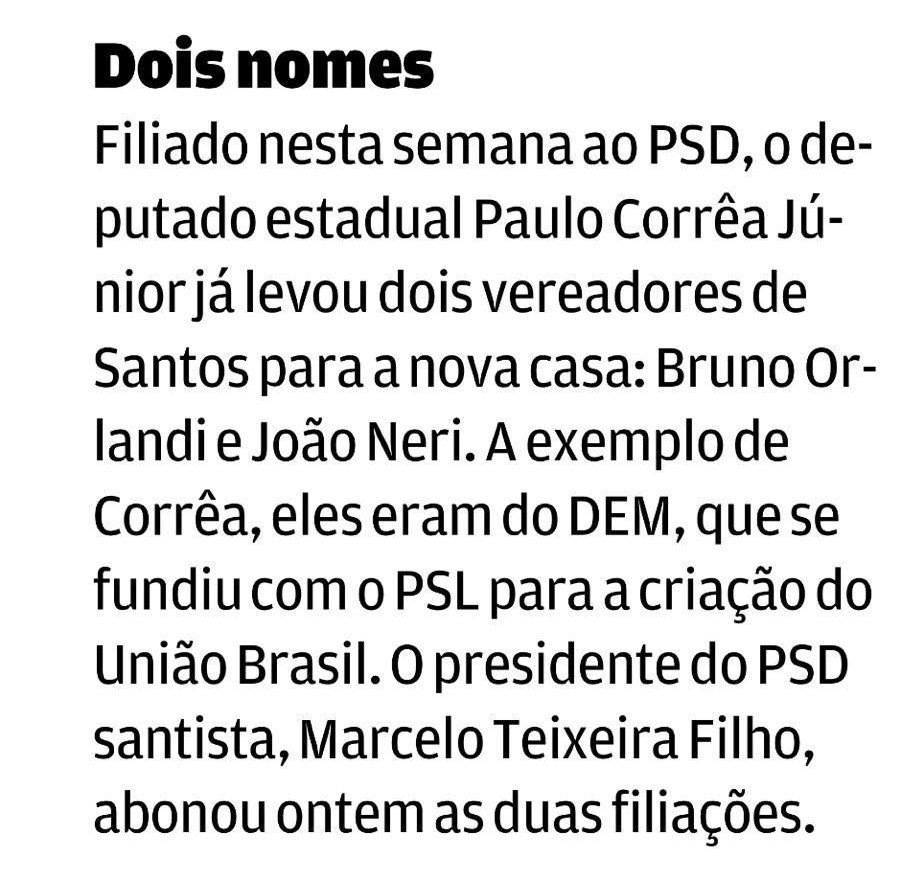 Santa Portal: Vereadores João Neri e Bruno Orlandi mudam para o PSD